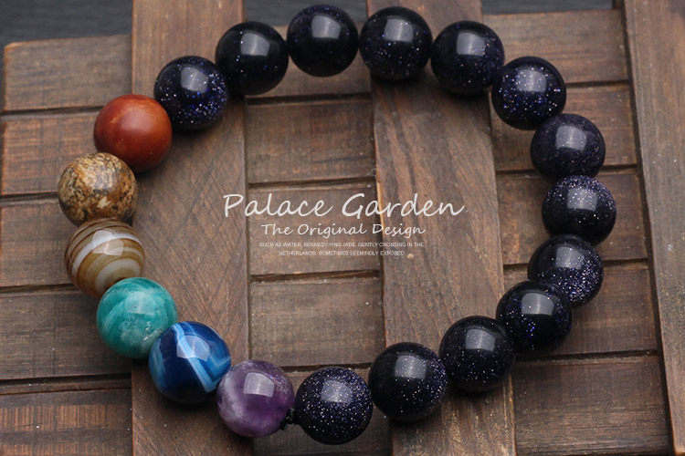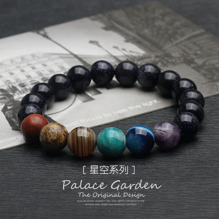 星空潮流蓝砂石手链男欧美风天河石紫水晶手串女5A天然蓝水晶饰品