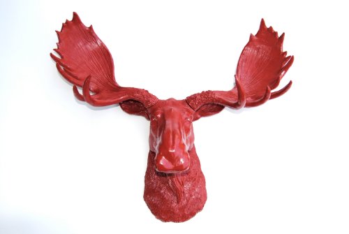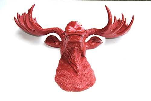 Near and Deer Faux Taxidermy Moose Head Wall Mount, Red