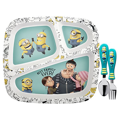 -. Title : Zak Designs Despicable Me Franchise Divided Plate, Fork and Spoon Set, Gru, Agnes, Bob & Stuart, 2 piece set
