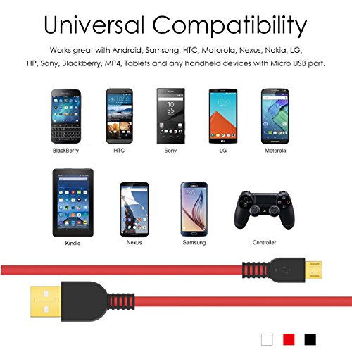Packing Contents: - 1x Micro USB cable - 1ft(Red) - 1x Micro USB cable - 3.3ft(Red) - 1x Micro USB cable - 3.3ft(Black) - 1x Micro USB cable - 6ft(Black) - 1x Micro USB cable - 3.3ft(White)
