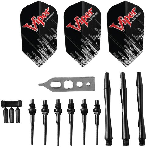 -. Feature : Designed with high quality, 90% tungsten and 10% nickel barrels which offer exceptional balance and styling in a slim profile / Each barrel has strategically placed knurled bands, deep grooves and rings that make excellent gripping points and encourages consistent hand placement / Diamond-cut aluminum shafts feature locking holes which allow for a tighter fitting that improves stability and greatly reduces the need to retighten during play / Includes an additional set of convex nylon shafts, flights, flight protectors, 2BA dart points and a dart mechanic wrench; Each soft tip dart weighs 18 grams / Darts and accessories are fashionably stored and protected in the Deluxe Dart Pal case, which features a soft cloth lining and a hard outer shell