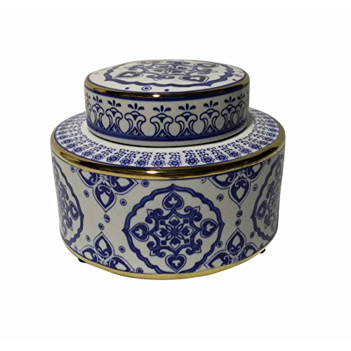 Benzara Well-Made Ceramic Covered Decorative Jar, Blue/White