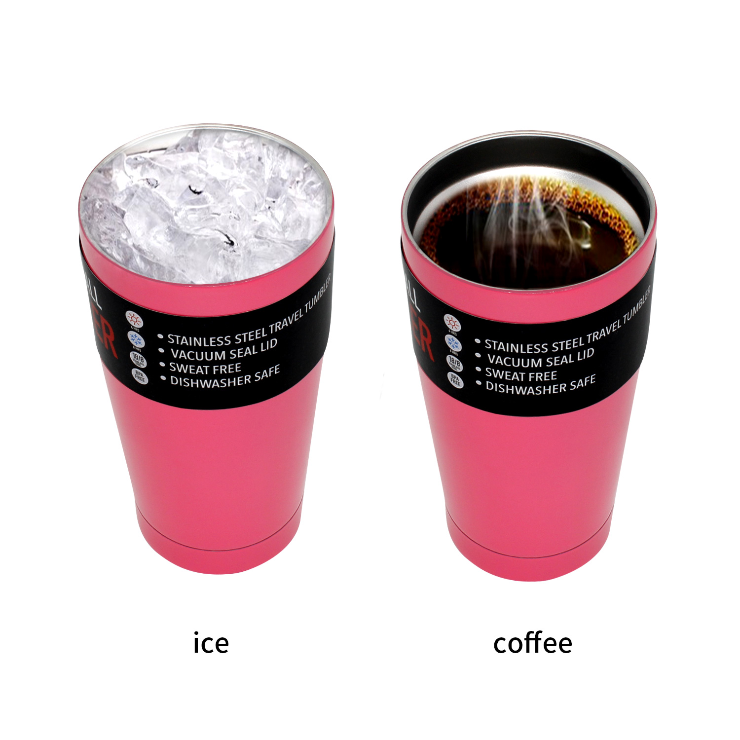 The VACUUM INSULATED - The double-walled vacuum insulated exterior will will your drink cold for up to 24 hours or hot up to 8 hours. The exterior will not sweat condensation or be hot to the touch.