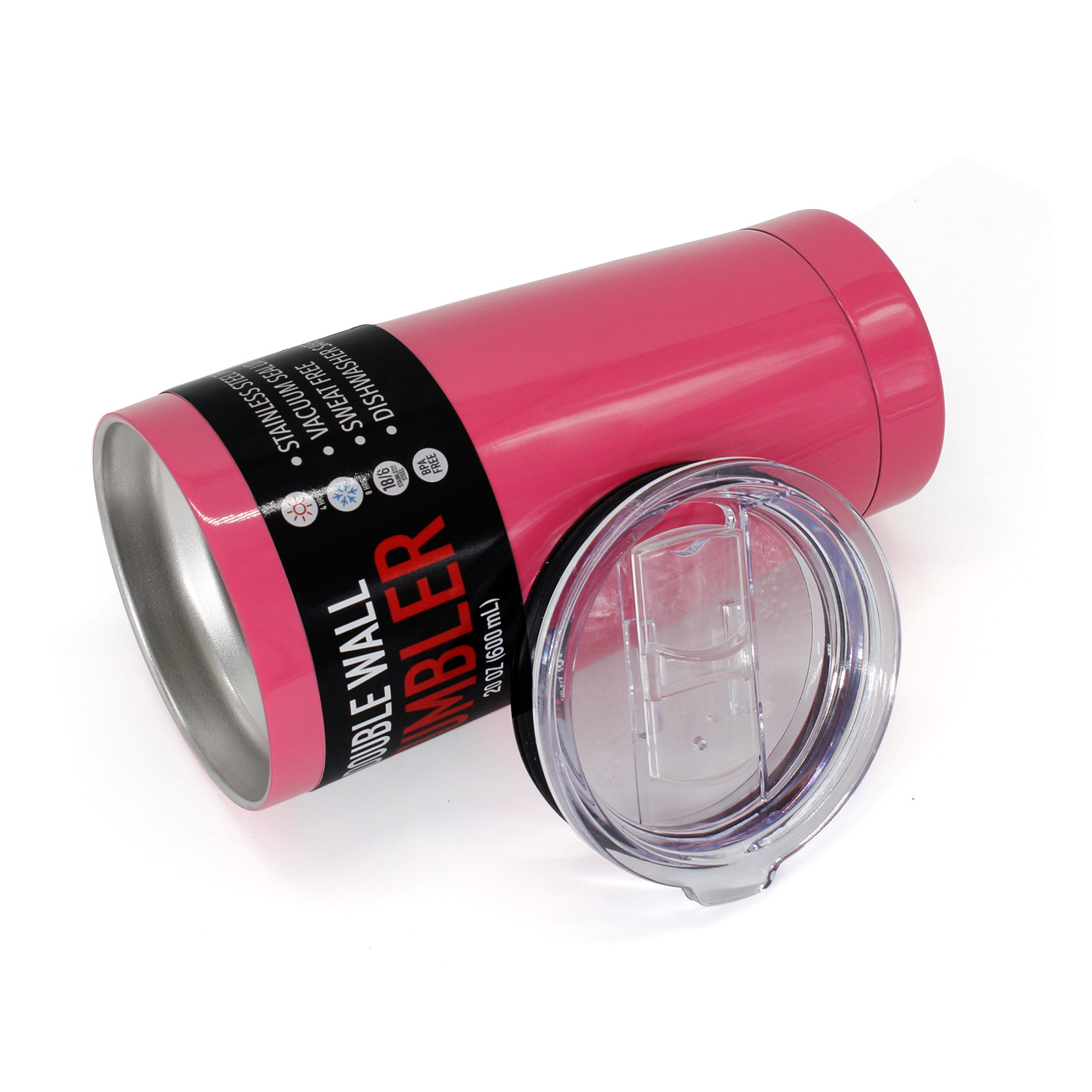 Grand Innovation Vacuum Insulated 20 oz Double Wall Stainless Steel Tumbler with Splash Proof Lid Pink (SKU: HGI-2247-1)