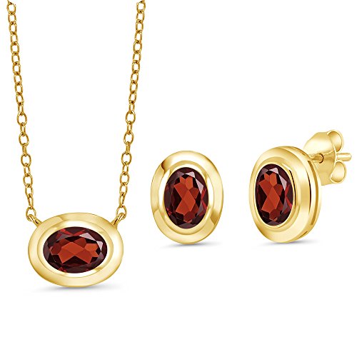 -. Binding : Jewelry -. Brand : Gem Stone King -. Color : Red -. Department : womens -. Feature : SIMPLY SOPHISTICATED - This delicate pendant will immediately put you in the spot light. Crafted with high quality stones this pendant is the perfect accessory for any ensemble on any occasion / UNIQUELY DESIGNED- With simplicity in mind this pendant is the perfect item for gift givers who want to show they care. Perfect for birthdays, weddings, mother day or just those moments when you want to get something for that "Someone Special". / GORGEOUS- and Sparkly these unique earrings are perfect for any outfit! Pair them with date night and work week looks you cannot go wrong! Beautifully crafted these earrings are the perfect gift for any occasion and make perfect stocking stuffers for the holidays. They're truly a fashion staple and belong in every jewelry collection. / UNIQUE- The design of these earrings will ensure that you stand out effortlessly. Gift these beautiful earrings to yourself or someone you love. Made in the USA Gem Stone King products are always made with the highest quality elements and standards. / Gemstones may have been treated to improve their appearance or durability and may require special care. -. Model : VIV-0128-OV-GA-R-YPSS -. NumberOfItems : 1 -. PackageQuantity : 1 -. ProductGroup : Jewelry -. ProductTypeName : FINENECKLACEBRACELETANKLET -. Title : 2.70 Ct Red Garnet 18K Yellow Gold Plated Silver Pendant Earrings Set With Chain