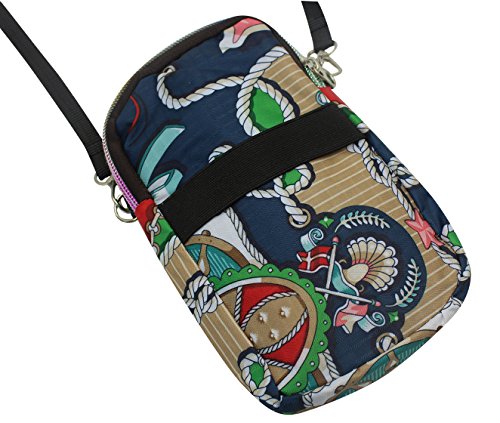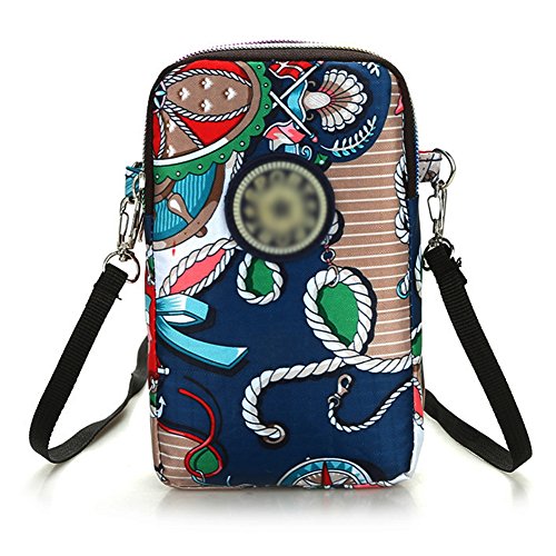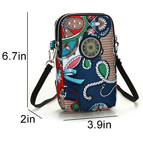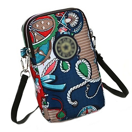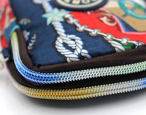 Women Fashion Crossbody Bag Nylon Wrist Bag 2-Layers Zipper Wallet Phone Bag