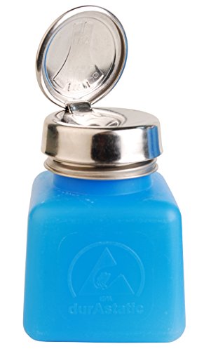 MENDA 35282 One Touch Stainless Steel Liquid Dispenser Pump, ESD Safe durAstatic Square Bottle, 4 oz, High Density Polyethylene/Stainless Steel, Blue