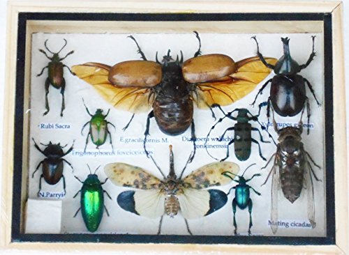 Real Mixed Beetle Cicada Insect Boxed Framed Taxidermy Display Wood Box For Collectibles