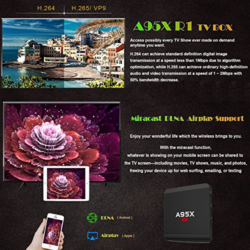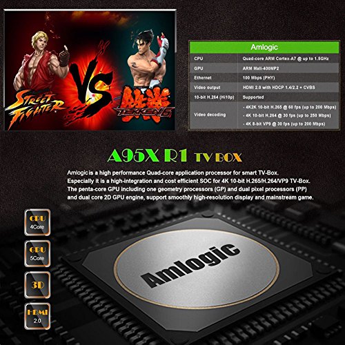 -. Feature : Android 7.1.2 OS,Amlogic S905W Octa core ARM Cortex-A53 CPU,2 GB DDR3,16 GB EMMC,Speed up the TV box running speed. / Sizet A95X R1 TV Box is a smart Android TV Box with the lastest hardware, HDMI2.0 to support maximum 4Kx2K display ,which you can use to enjoy your favorite movies. / Multifunction Network Function,You can enjoy it with Miracast,Airplay,Skype chatting,Picasa,Youtube,Flicker,Facebook,Online movies,etc. / It Supports decoding and playing almost all popular audio and video formats, bringing you to enjoy 4K ultimate HD video. you can find many useful add-ons for your TV boxes. / Sizet A95X R1 Network TV box Quality Assurance,if there is any problem, we will do our utmost to help you.