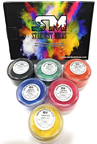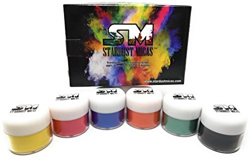 Stardust Micas Pigment Powder 6-Pack Cosmetic Grade Colorant for Makeup, Soap Making, Bath Bombs, DIY Crafting Projects, Bright True Colors Stable Mica Batch Consistency Tested Color Set #1
