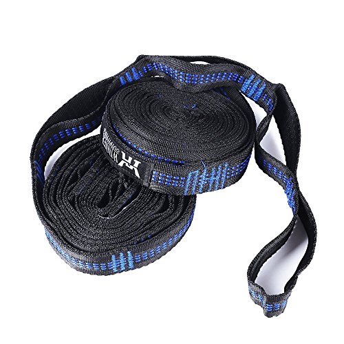 Fast And Easy To Hang Your Hammock: This hammock tree straps is 10 Feet long (20 Feet total) x 1 Inch wide (tree-friendly), has 16 loops (32 combined). This hammock straps is long enough for trees, posts, large rocks. Our loop system makes it easy to adjust the height of your hammock fast so that You can't learn to tie a complicated knot. With 100% polyester webbing material, the hammock straps does not slip