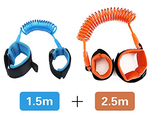 Easy to use:It has two comfortable cuffs, you only need to connect the anti lost wrist to adults and baby's wrist. The blue shrink chain can be extended to 4.9ft and the orange can be extended to8.2ft.