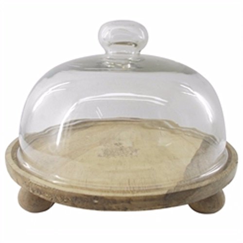 Benzara Artistic Wood and Glass Domed Cake Stand, Clear and Brown