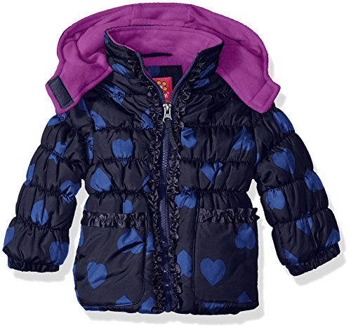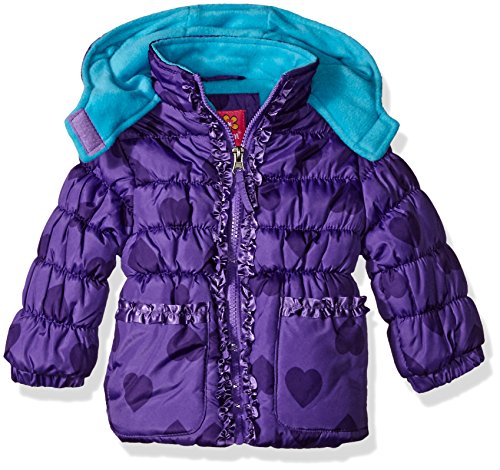 Pink Platinum Baby Girls' Infant Tonal Heart Print Puffer Jacket, Purple, 12 Months