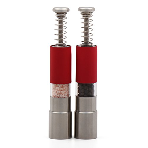 - 6-inch push-button salt and pepper grinders designed to be operated with just one hand perfect for those that like to have a free hand while seasoning.