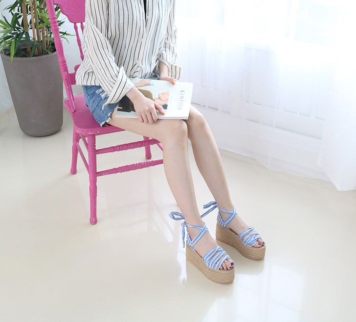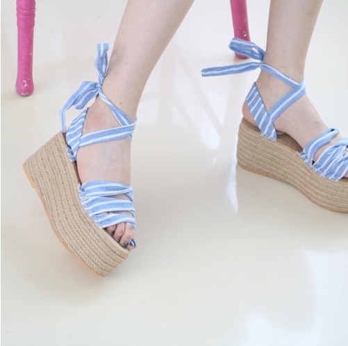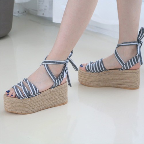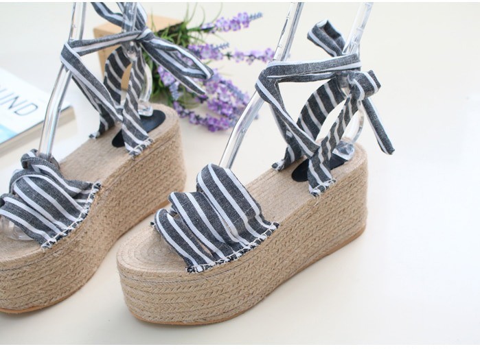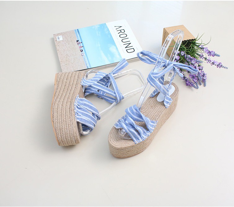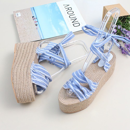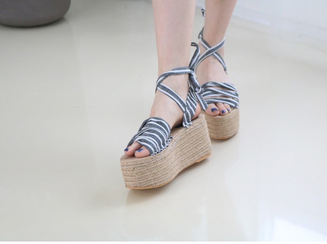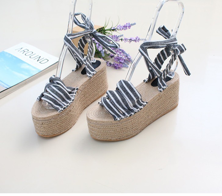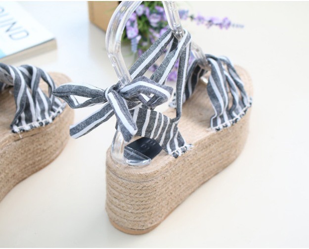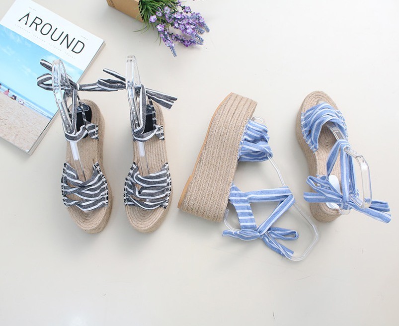商品名:サンダル レディース 厚底 エスパドリーユ ジュートサンダル ストライプ 2018 夏 ファッション 靴 婦人靴