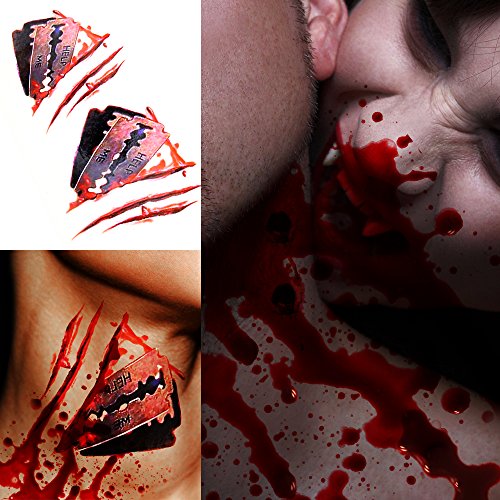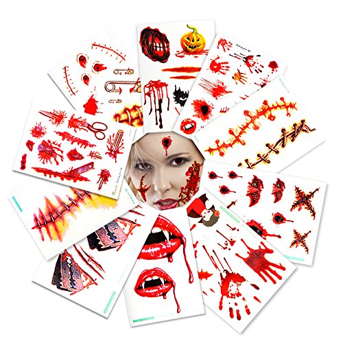 Studio : Geekper Publisher : Geekper Binding : Toy Product Description Description Want a temporarily brand-new image to amaze or scare your neighbors, friends for Halloween? Do not worry, our products will well satisfy your desire. With several different kinds of pattern such as: bloody mouth with buckteeth, long ugly scars, bloody hands, the devil pumpkins as well as scissors with blood, each pattern is spooky enough for you to scare anybody. Feel ease to stick it on your face, arms, legs, anywhere you prefer as it is pretty nature and harmless to the skin. It is well attached to the skin, lasting for 3-5 days normally. But if you want just keep it during Halloween, you may easily erase it with BB scream, body oil or alcohol. There are 10 sheets of stickers each pack.