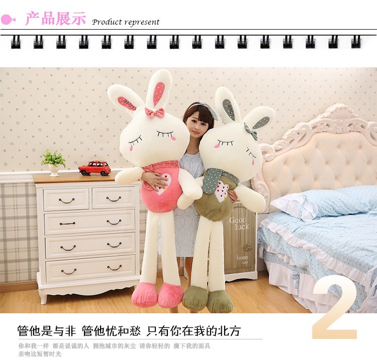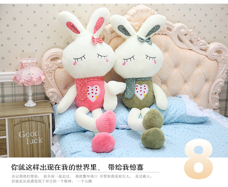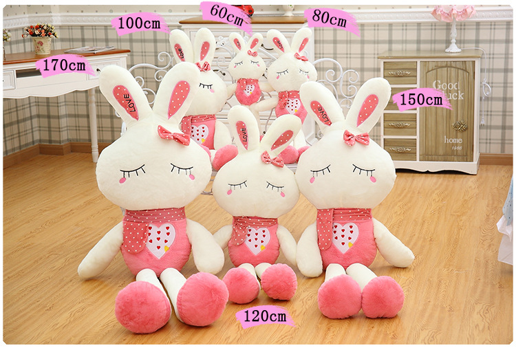 Closed eye RabbitSize:80CM,100CM,120CM,150CMColor:Pink,GreenOpen eyes rabbit