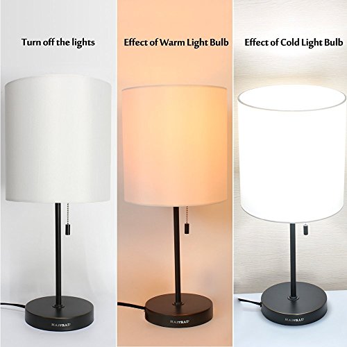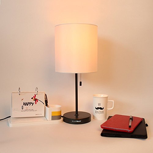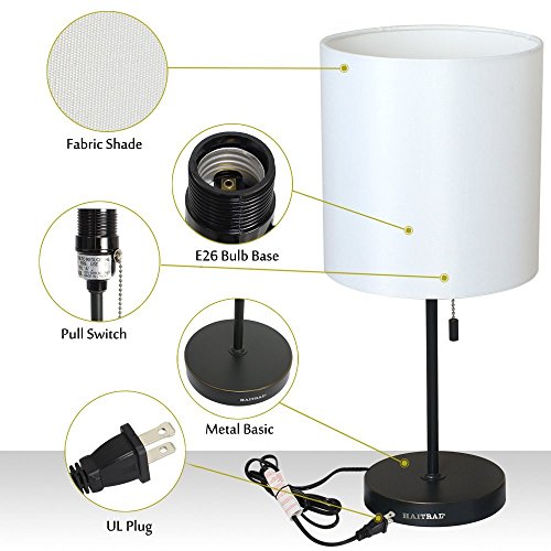 HAITRAL Table Lamp Metal Basic Modern Desk Lamp Fabric Shade Minimalist Bedroom Lamps for Gifts,Office,Living Room
