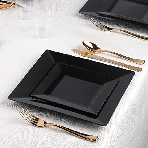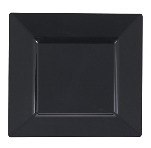 Kaya Collection - Black Plastic Square 9.5" Dinner Plates - Disposable or Reusable - 2 Pack (20 Plates)