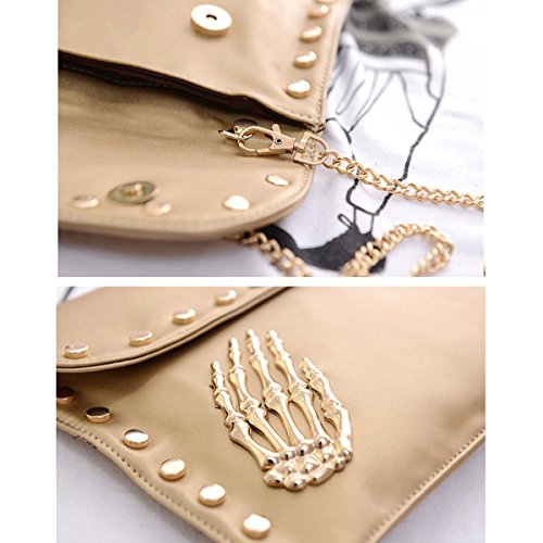 -. Title : Orfila Women's Fashion Skull Rivet Clutch Handbag Envelope Chain Shoulder Crossbody Bag