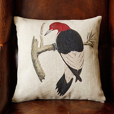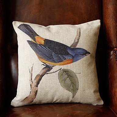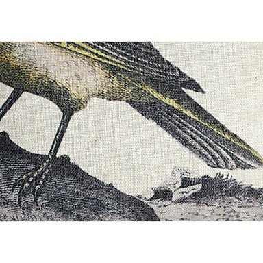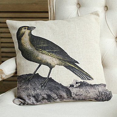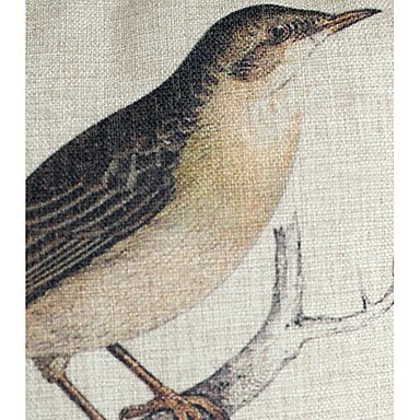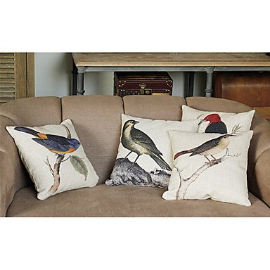 【Bailand】 Set of 4 Linen and Cotton Pillow Cover with Birds Decoration (Set of 4)