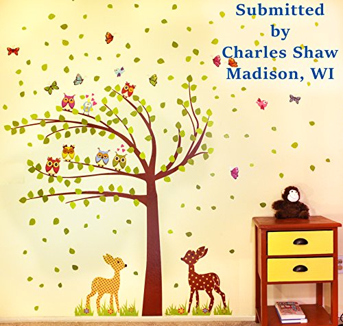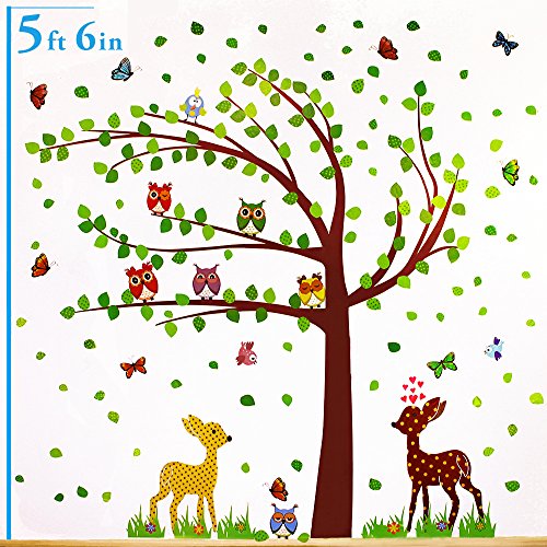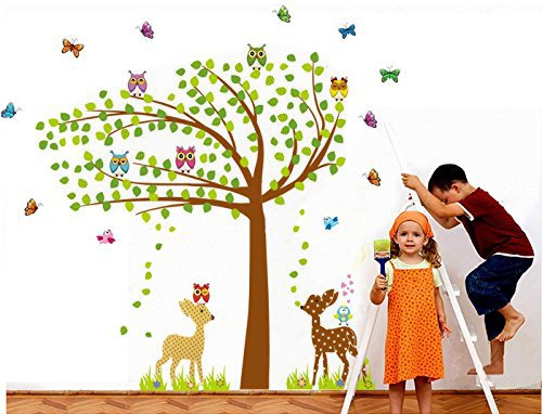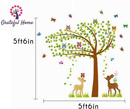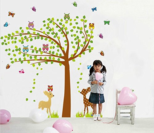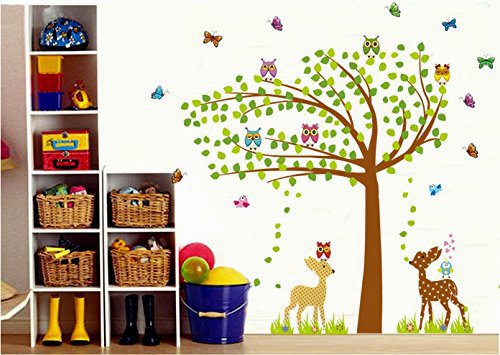 Wall Decals * Swaying Tree, Friendly Deer & Watchful Owls * Baby Decorations - Wall Stickers - Nursery Decals - Decor for Kids, Boys and Girls Room - Money Back Guarantee - Limited Print