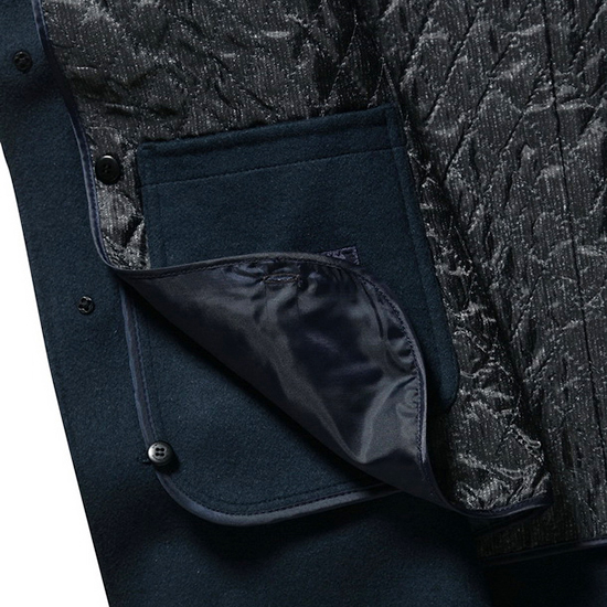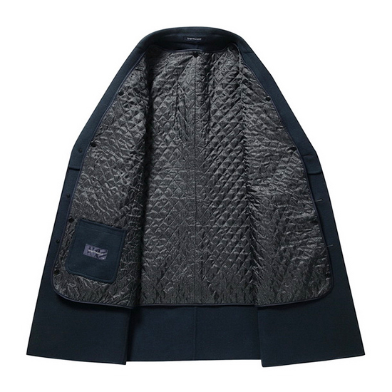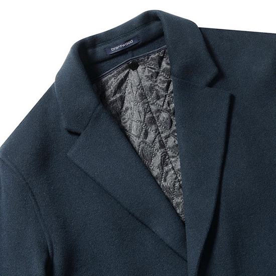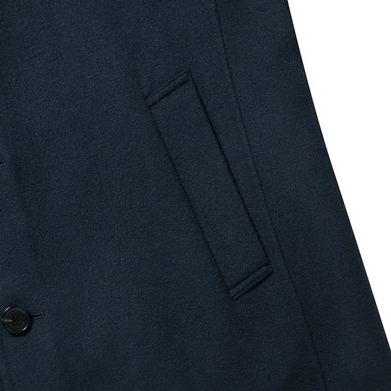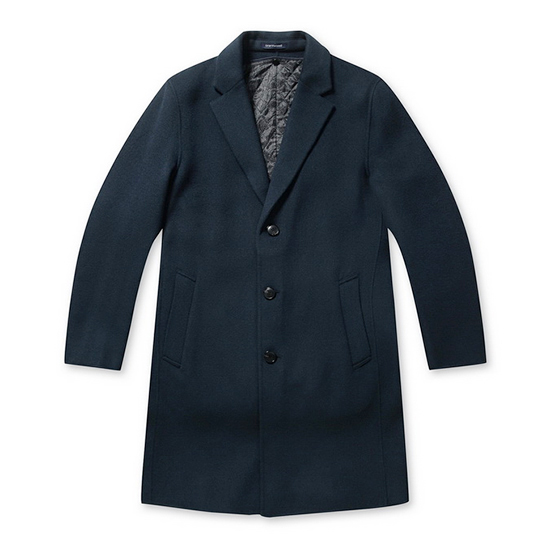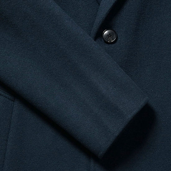 - 솔리드 컬러 디자인의 심플한 남성 코트.