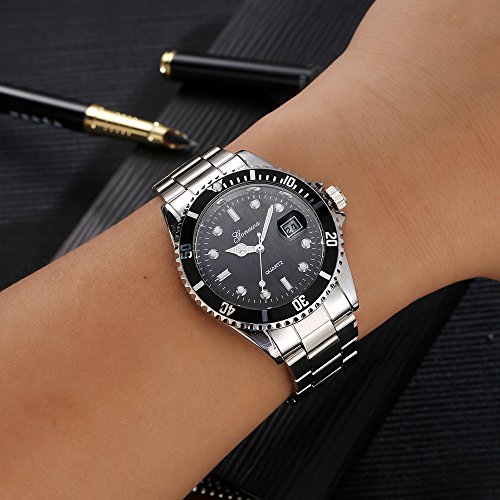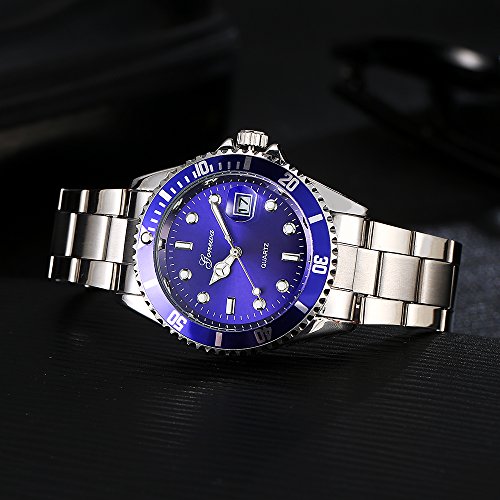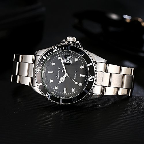 -. Title : Gonewa Analog Quartz Metal Men Wrist Watches with Date Stainless Steel Back Silver GON001