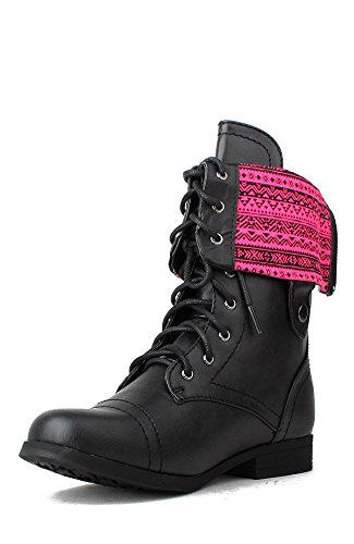 Studio : Bumper Publisher : Bumper Binding : Apparel Product Description The cutest combat boots with a pop of color! Featuring a round toe front, stitch accents, lace up front, fold down collars with neon tribal details, and hind zip for easy slip on and off. 0