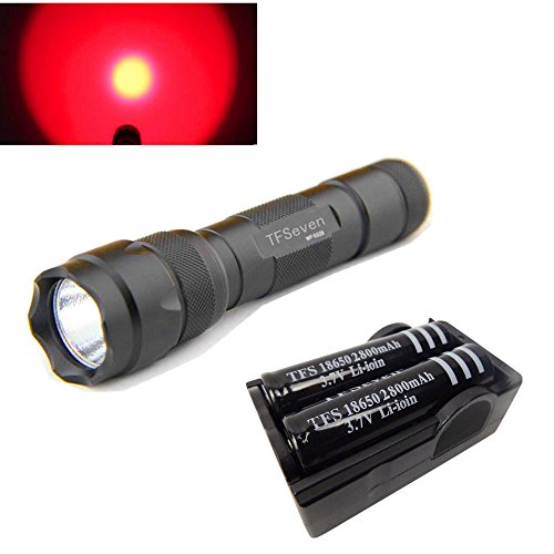 TFSeven Mini Q5 450 Lumen Waterproof Red Light Hunting Flashlight Torch , 2 18650 Batteries , Batteries Charger Included (Red Light Hunting)
