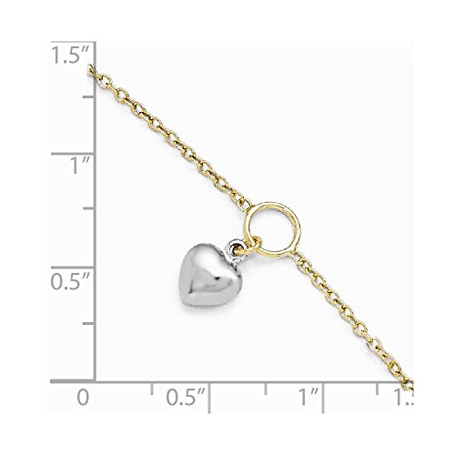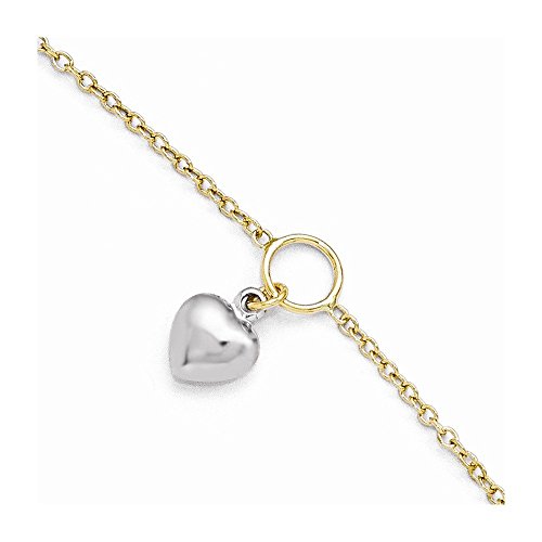 -. Feature : This 14k Two-tone Gold Polished Heart Anklet w/1in ext is made with excellent quality / Metal Type - White-and-yellow-gold / Metal Stamp - 14k / Free Shipping / 30 Day Returns and Satisfaction Guarantee