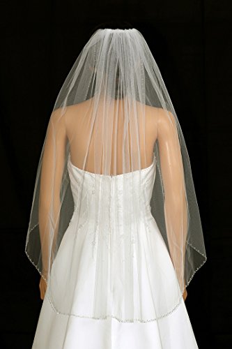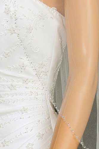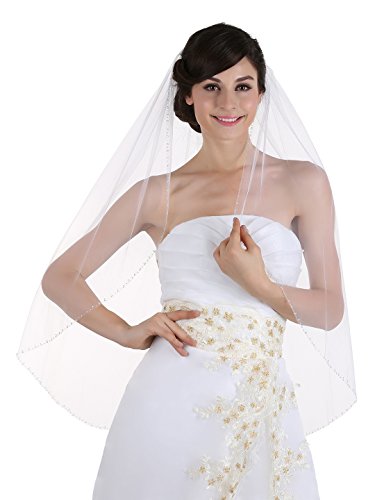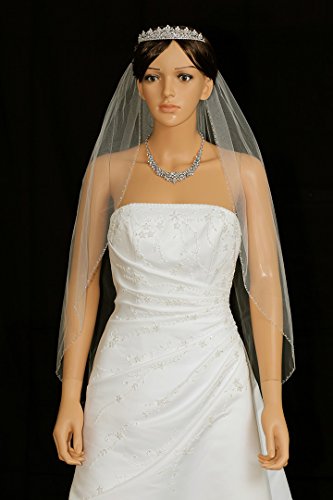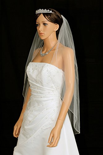 (SAMKY)/Accessories/Scarves/DIRECT FROM USA/1T 1 Tier Beaded Edge Bridal Wedding Veil - Ivory Fingertip Length 36" V295