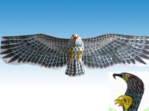 The Desert Eagle Kite is a deluxe Silk-like Hawk kite with a 3-Dimensional body. With its staggering 150cm wingspan soars through the air with its wings fluttering and huge bright eyes looking down, an attractive design that is easy to fly. Desert eagle Kite will look stunning in the sky at any time of the year, it will delight flyers of all ages. With its bright and vibrant colours. it is a colourful wonder in the sky.