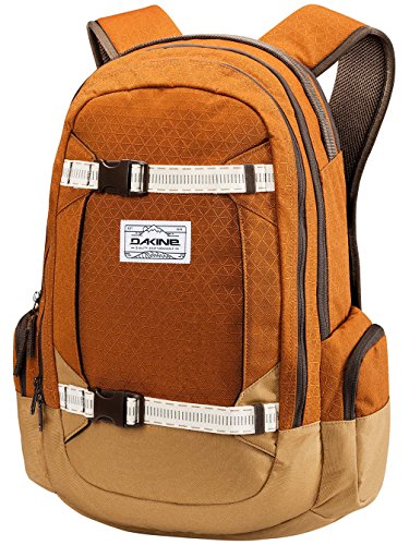 Popular Mission backpack is the ultimate accomplice ready to go everywhere you go. This super organized pack is equally equipped for mountain missions or navigating the daily grind. Features like a padded iPad sleeve and dedicated laptop sleeve as well as a front organizer pocket will keep you sharp, while the fleece-lined sunglass-goggle pocket, vertical board carry straps and stowable waist belt ensure there's still plenty of fun going down. If your bag gets dirty, Dakine recommend hand washing with mild soap (like Nikwax Tech Wash), cold water and a soft bristle brush. If hand washing is not going to do the trick, use a front loader washing machine. To ensure your backpack doesn't get tangled, place inside a pillowcase or mesh bag before washing. Always use cold water, mild soap and run on a gentle cycle. Never bleach your pack. Hang to dry in a warm but shady place, ensuring both inside and out are dry before storing. Details: 600D polyester, padded laptop sleeve, fits most 15'' laptops, vertical board carry straps, fleece lined padded iPad sleeve, fleece lined sunglass or goggle pocket, ergonomic shoulder straps with breathable air mesh, organizer pocket, dual zippered side pockets, stowable waist belt, adjustable sternum strap, limited lifetime warranty. Dimensions: 1530 cubic inches (25 liters), 20'' x 14'' x 9'' (51 x 36 x 23cm), 2 lbs. (.9kg). Material: Polyester.Feature