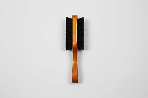 -. Feature : 100% Boar bristles & natural wood handle / Dual sided brush for soft & firm bristles / Stimulate scalp and enforces waves / Styles short cuts and fades
