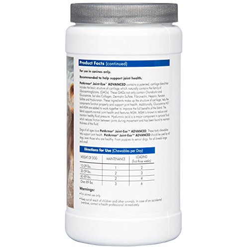 PetArmor for Dogs Joint -EZE ADVANCED is formulated to help nourish, support and maintain the health of your pet's joints and cartilage. Also contains MSM. Product is available in a 60 count bottle.
