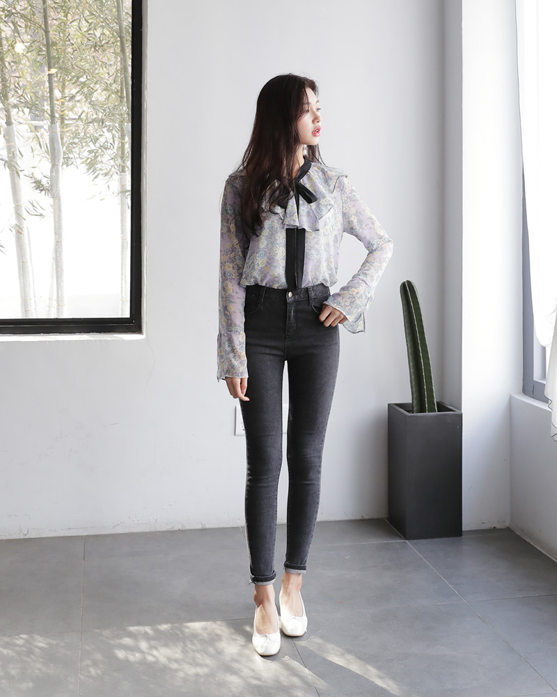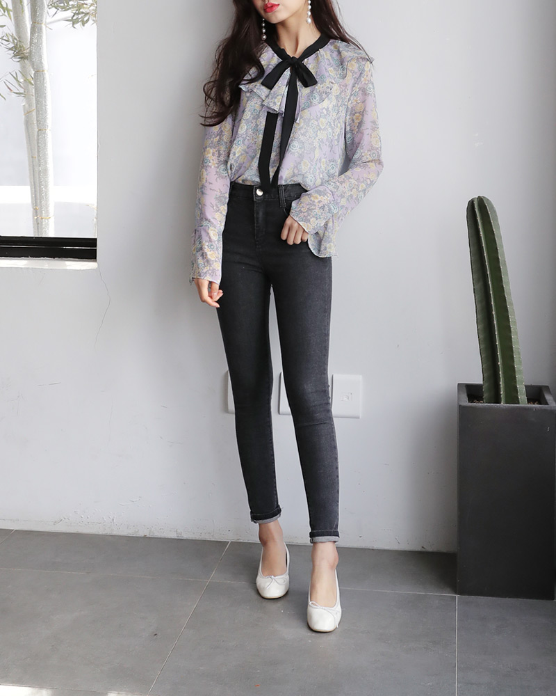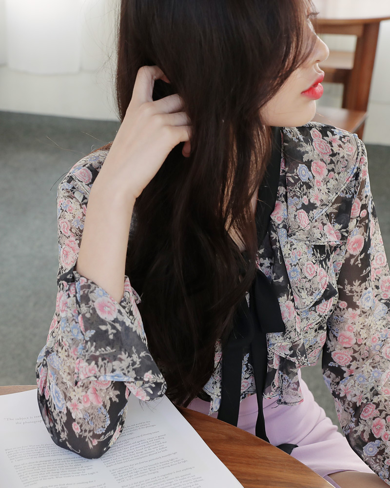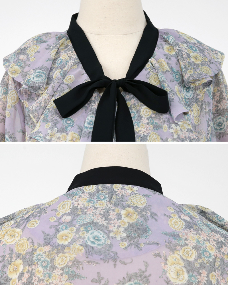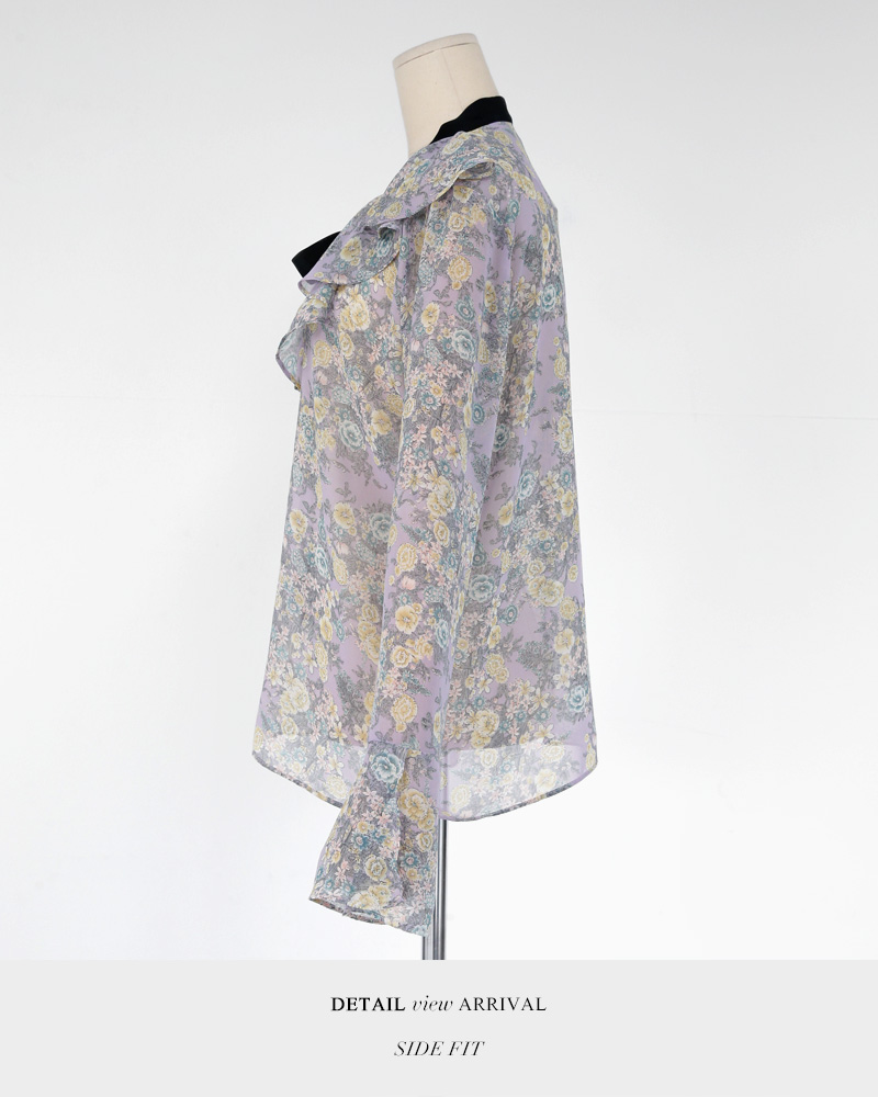 - ネックラインに沿ってワイドなフリルディテールで女性らしさを強調しています