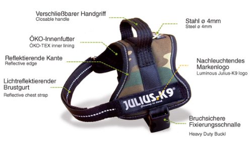 -Removable Velcro labels: There are about 600 different Velcro labels on stock, but you can order also a customized one especially dedicated for your dog. The K9 Powerharness comes with a pair of fluorescent JULIUS-K9 series labels which glow in the dark.