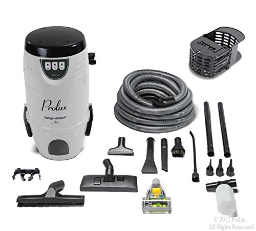 -. Feature : Prolux Lite Wet Dry Garage Vacuum - This is the most versatile wall mounted Garage Shop Vacuum in the world. This high end vacuum can vacuum up dirt, vacuum up water, vacuum up snow, blow, exhaust air, inflate, deflate, spray, wash, shampoo upholstery, and squeegee hard floor surfaces. / A tool for nearly every job- All the tools easily fit in the wall mounted tool caddy. Floor Tool, Floor Squeegee Tool, Upholstery Tool, Standard Crevice Tool, Detailing Crevice Tool, Hand Held Sprayer / Shampooer, Shampooer Extraction Tool, 18 inch extension wands (quantity 2), and 3 different sized inflator / detailing tools. / Powerful 1500 watt 12 amps of Suction -For straight suction most vacuum cleaners only have 9 amps of power. The Prolux uses a power 12 amps of suction which produces an amazing 145 cubic feet per minute of airflow (thats a lot of power). / Washable Cloth filter can last the lifetime of the vacuum. As your filter fills up with dirt simply wash and reuse. Durable - Dont let the low P.R.Ice fool you. This is a high end vacuum appliance that will look & work great in any garage. / Specs - Unit Dimensions 12 x 14 x 26 inches, 12 amp motor, 145 CFM of power, 4 gallon dirt bucket, hose legnth is 32 feet, and 73 dB of sound produced. Easy and simple to use - The Prolux Garage Vac is designed to easily be used.