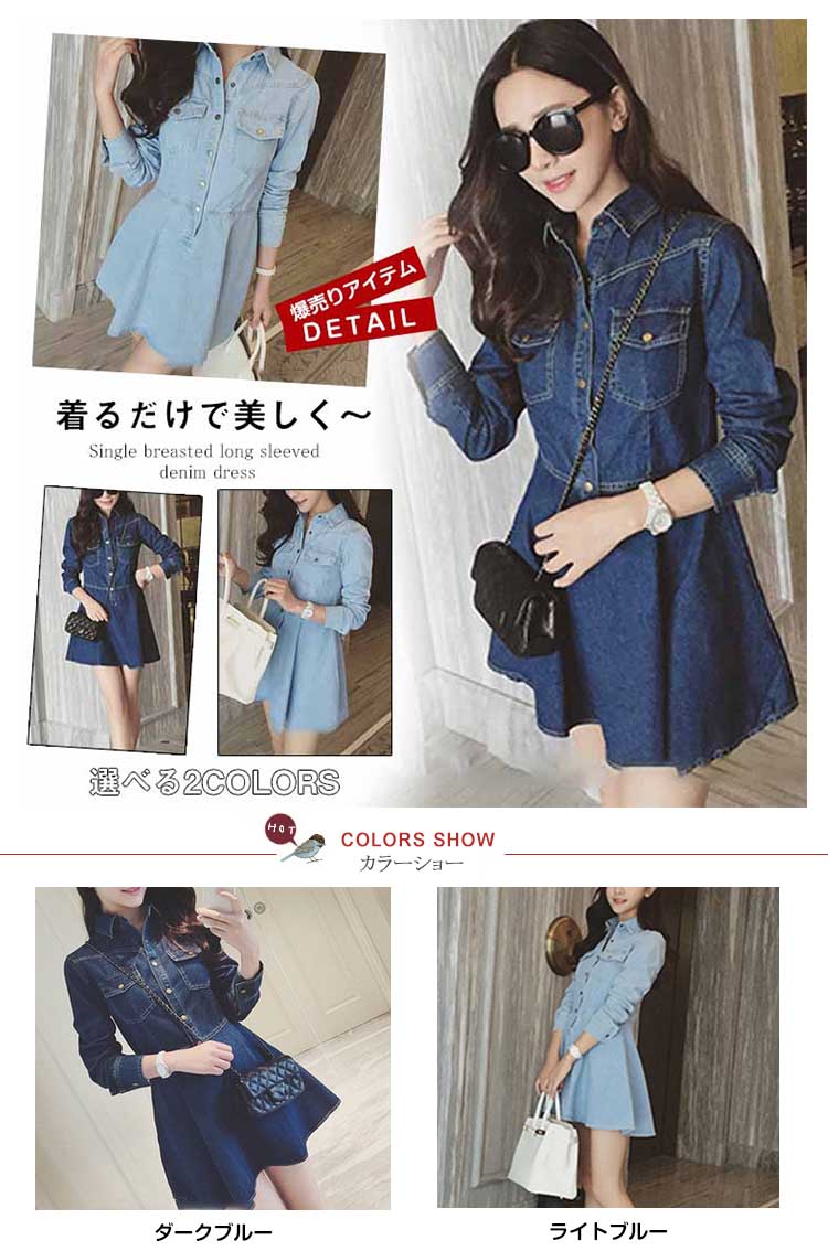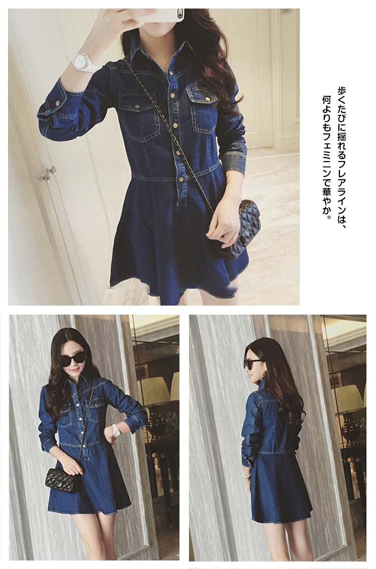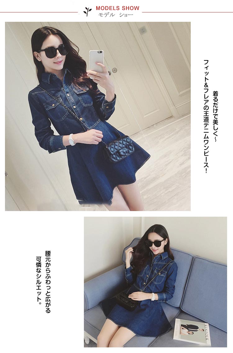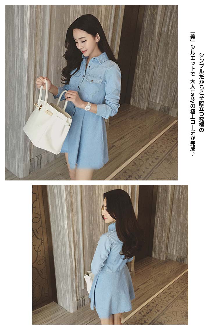 | 着るだけで美しく?フィット&フレアの王道デニムワンピース!腰元からふわっと広がる可憐なシルエット。歩くたびに揺れるフレアラインは、何よりもフェミニンで華やか。胸ポケット、ボタン使い、しっかりとしたデニム生地感など嬉しいポイントたくさんありますよ。シンプルだからこそ際立つ究極の「美」シルエットで 大人Ladyの極上コーデが完成♪ | |