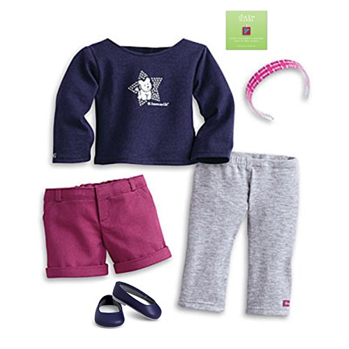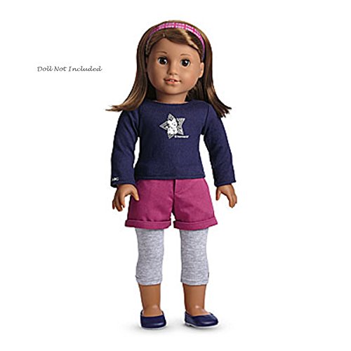 - She can let her love for Coconut shine! This cute and sparkly casual outfit includes: A long-sleeved tee with a cute Coconut graphic inside a silver-studded star Twill magenta shorts that can be worn alone or layered Knit gray leggings for a stylish look Ballet-flat shoes A pink plaid headband to sweep her hair back A "Fair" square charm for the doll's charm-keeper necklace