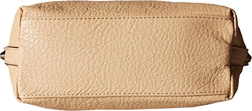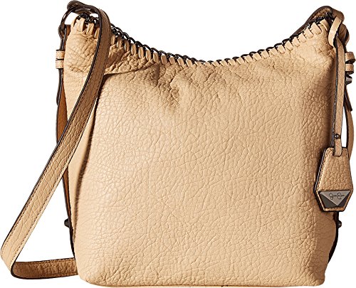 Top snap button closure. Removable and adjustable crossbody strap. Exterior features zip pocket at front and back, woven chain detail around the top, brand hardware, hanging brand charm, polished hardware, and tonal stitching. Flat base. Lined interior features back wall zip pocket and two slip pockets for organization. Imported.
