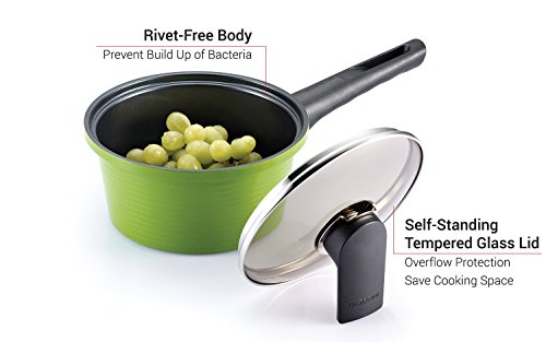 SELF-STANDING TEMPERED GLASS LID - Overflow protection & Save cooking space.