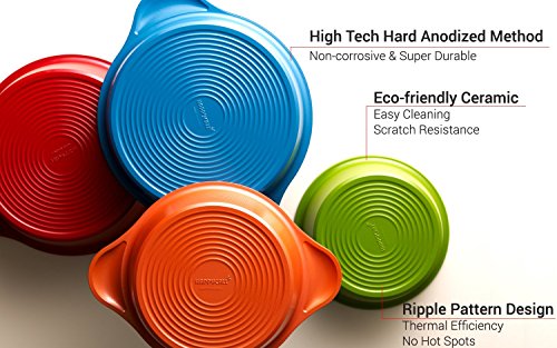 Happycall Hard Anodized Ceramic Pot adopts aerospace technology known as Alumite or Hard-Anodizing to create corrosion-resistance. It is applied to die-cast aluminum to retain aluminum's light-weight properties yet regid structure. Comes with the Happycall self-standing glass lid which includes an automatic steam vent.