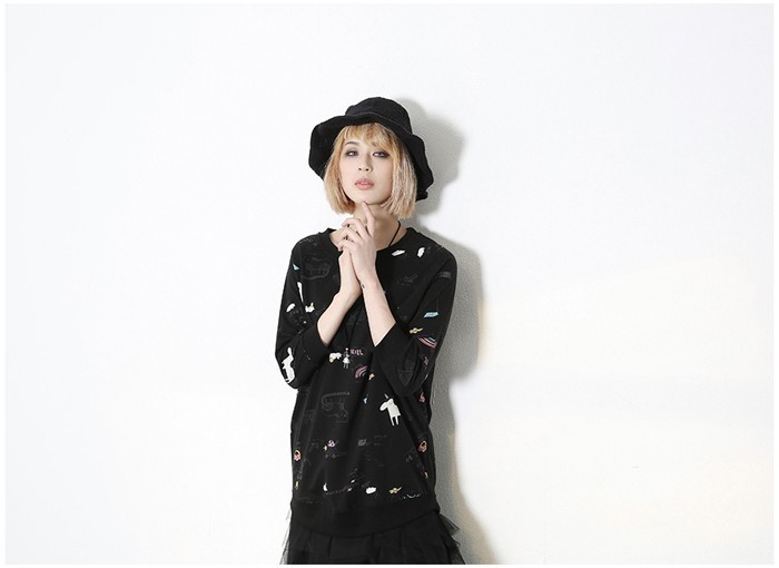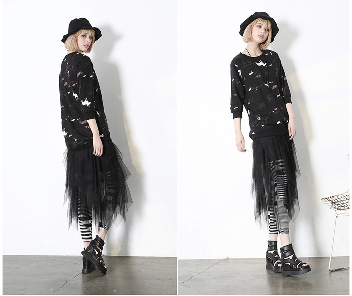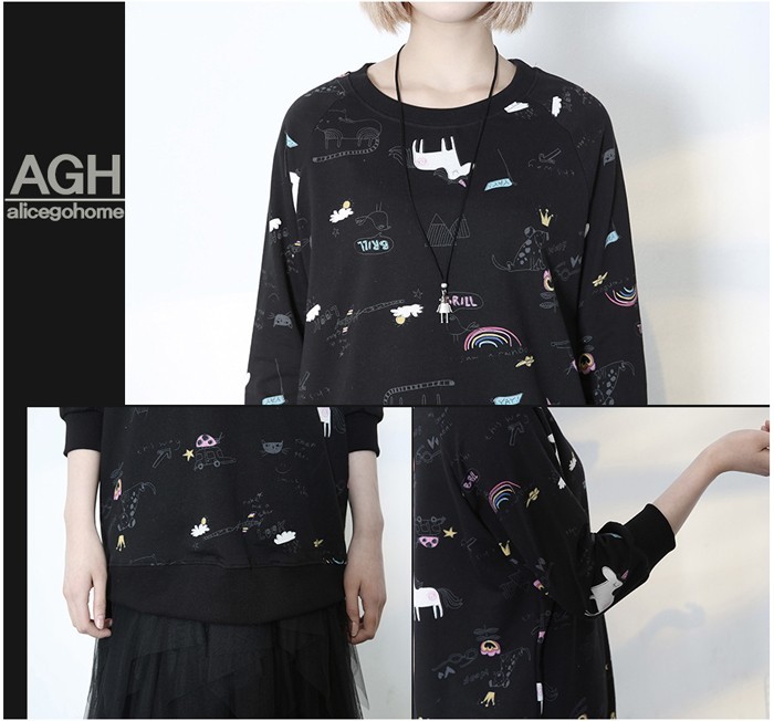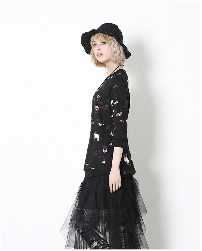 商品名:Tシャツ レディース トップス プリント 長袖 春 2018 モード系 個性的 40代 ファッション