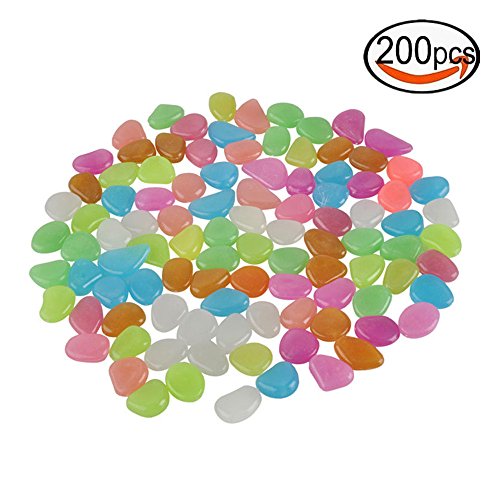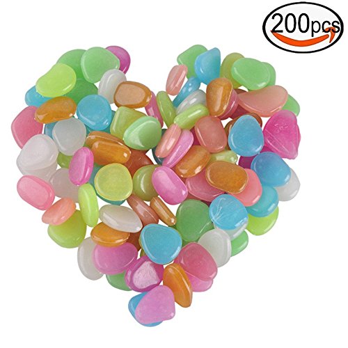 200PCS Glow in the Dark Garden Pebbles Stones for Walkway Yard Plants and Decor with Garden Luminous Pebbles in Colorful