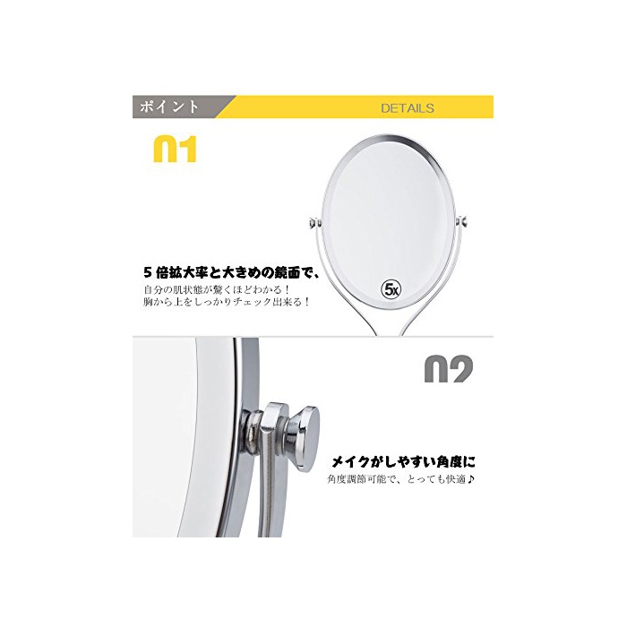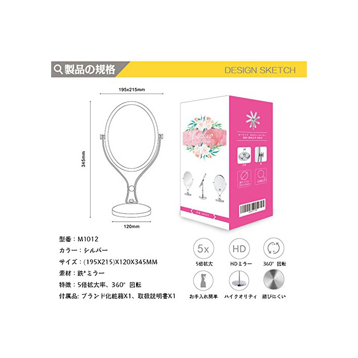 원본상품명: (セ?ディコ)Cerdeco ??のオ?バル鏡DX 5倍?大鏡+等倍鏡 ?面化粧鏡 360度回? メイク 化粧道具 エレガント 鏡面165mmx210mm