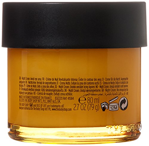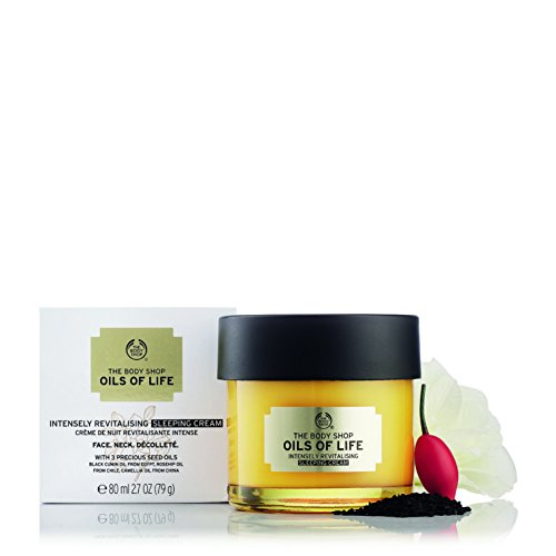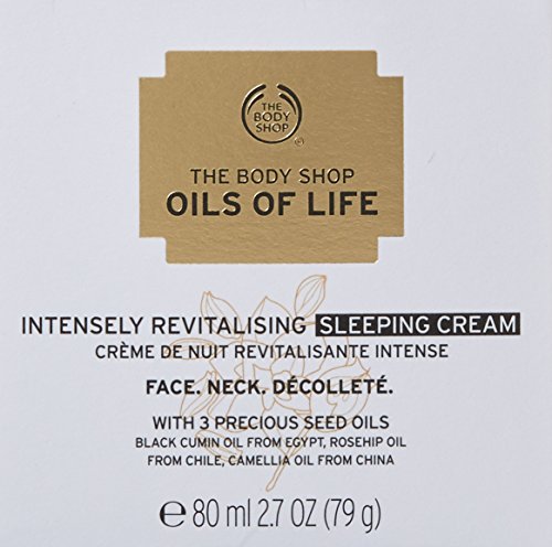 ReleaseDate : 2016-12-17 Studio : Buth-na-Bodhaige Inc, d/b/a The Body Shop Publisher : Buth-na-Bodhaige Inc, d/b/a The Body Shop Binding : Health and Beauty Product Description Infused with 3 precious seed oils from around the world, known for their revitalizing and repairing properties on skin ? Black Cumin from Egypt, Camellia from China and Rosehip from Chile ? and a powerful blend of essential oils, The Body Shop's Oils of Life Intensely Revitalising Sleeping Cream is a refreshing night time cream that nourishes and revitalizes the skin with replenished moisture. 0