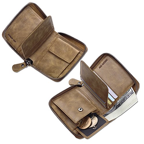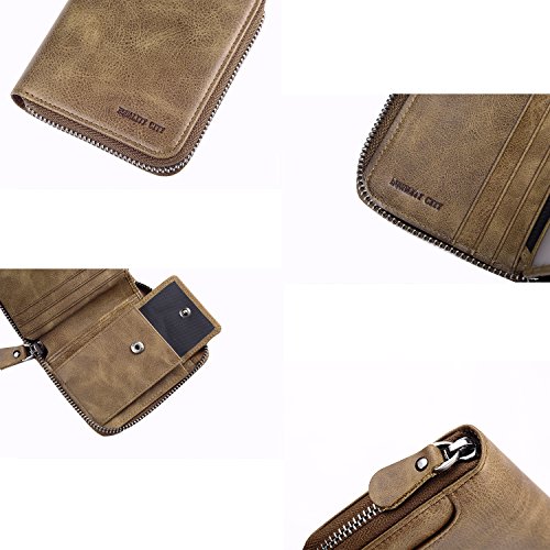 -. Feature : 100% cowhide leather ,wear-resisting,waterproof,scratch-resistant,with RFID Blocking skill / Approximately Size:4.33"Lx3.6"D x0.86"H,N/W:115g, it's convenient to put into your pocket and hold in hands / Folding by smooth and durable zipper,so you will not feel hard to zip up the wallet / Providing gift wrapped box, you can purchase it as gift to your friends / QUALITY GUARANTEED: For any dissatisfaction, just leave me an e-mail , Pabojoe Bag Store Promise you a Return Policy and Absolutely FULL Return Guarantee